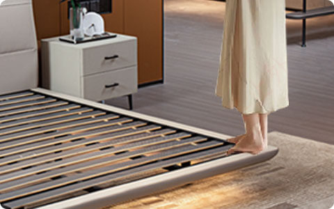 悬浮轻薄床邦,配以晨雾白简约床屏